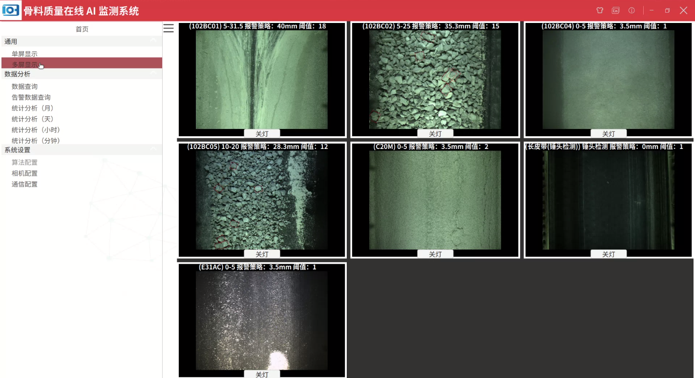 -中控后台实时显示骨料图像和监测结果,支持单点位多点位画面切换
