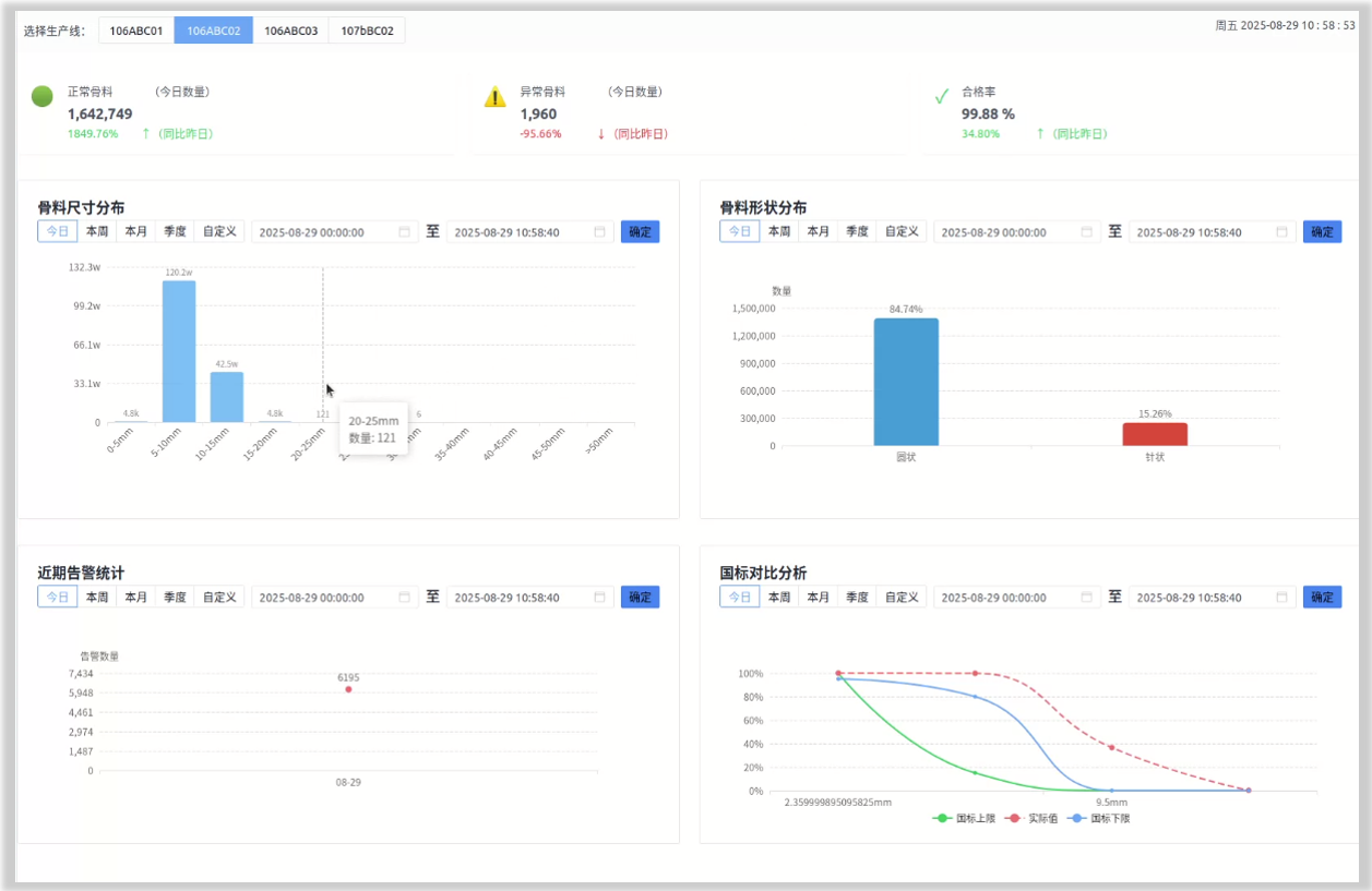 通过对骨料质量的实时监测和分析,能够及时发现质量问题并进行调整,生产过程更可靠,有效保障持续稳定的产品质量。