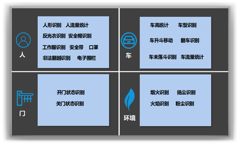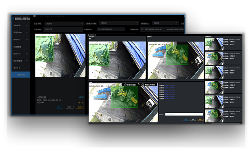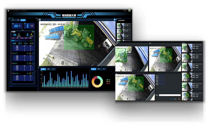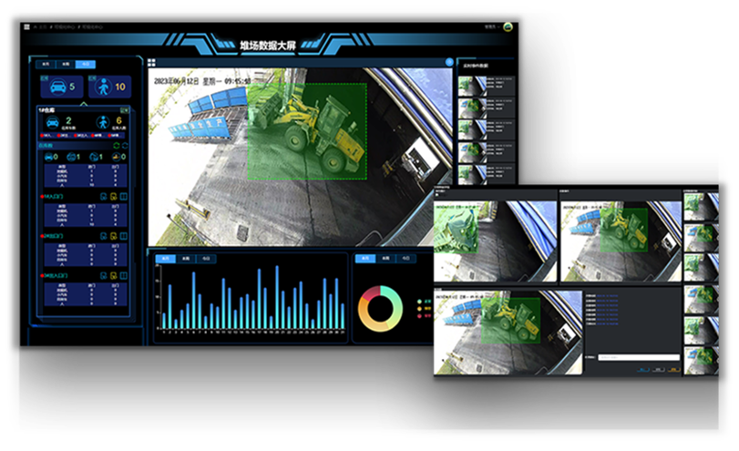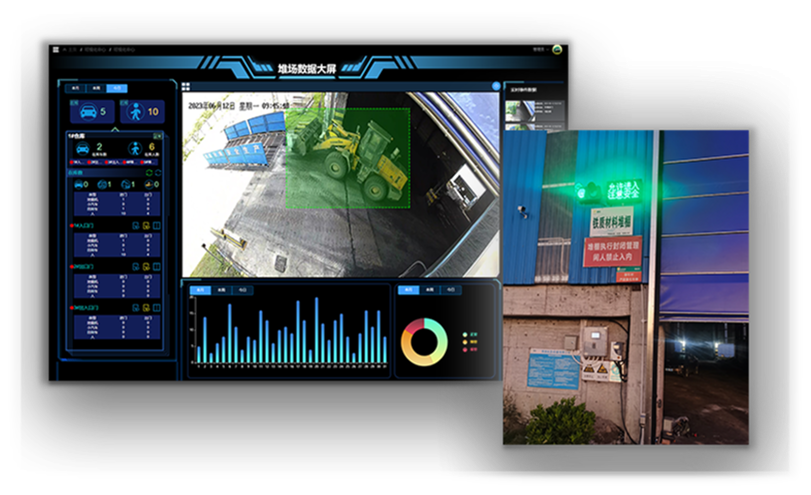 智能自动对堆场内人车的准确识别和监控,有效控制门禁,实时监测和预警堆场中的安全事件例如异常行为、闯入堆场的非法人员等,及时采取措施防止事故发生,提升堆场安全管理防范效率。