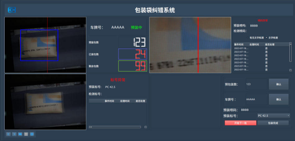 装水泥出厂日期、编码喷码等信息需要识别对应,人工核对耗时,准确率难保证